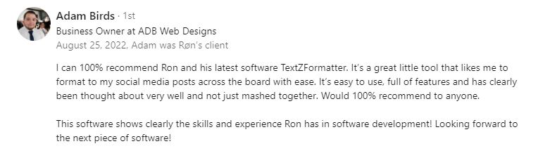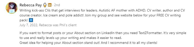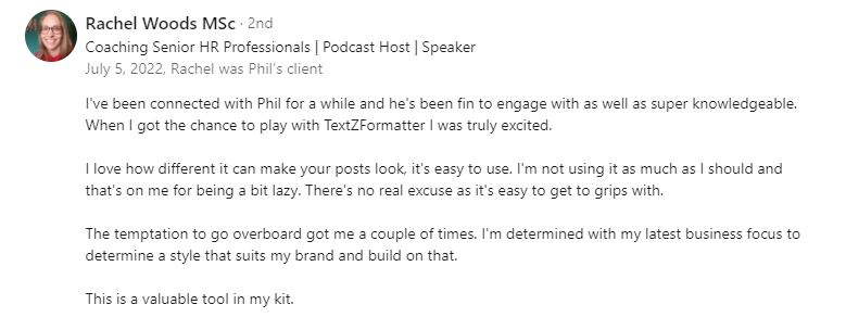 TextZformatter let's you create professional looking posts in three easy steps that will get you standing out and noticed in no time at all. Your completed formatted post is compatibile with all the main stream social platforms.